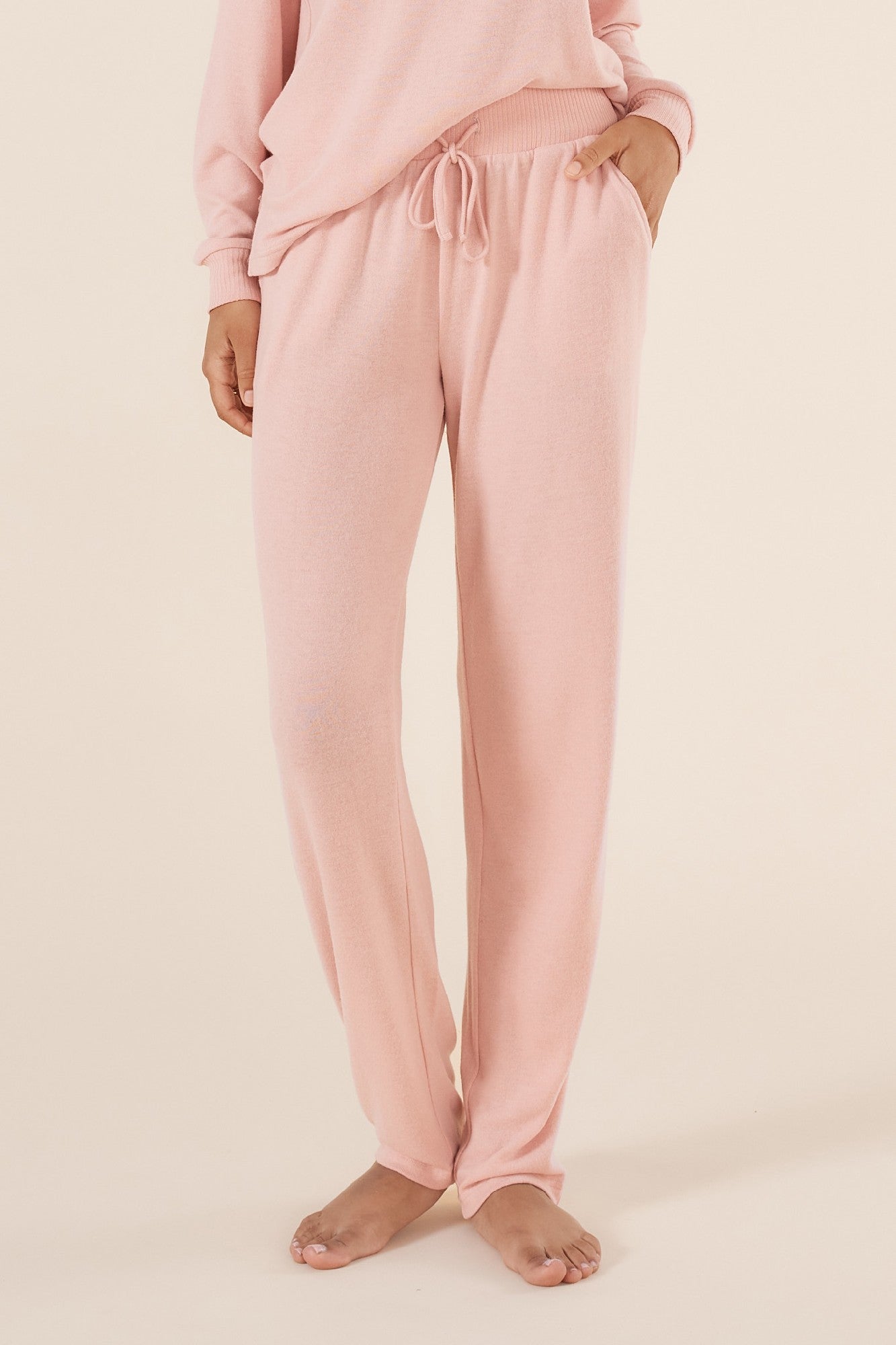 Wear the Keira Weekend Lounge Set as a complete cozy ensemble, or mix and match the pieces with other wardrobe staples. The top pairs beautifully with leggings or jeans, while the pants can be styled with a fitted tank or oversized sweater for a relaxed vibe.