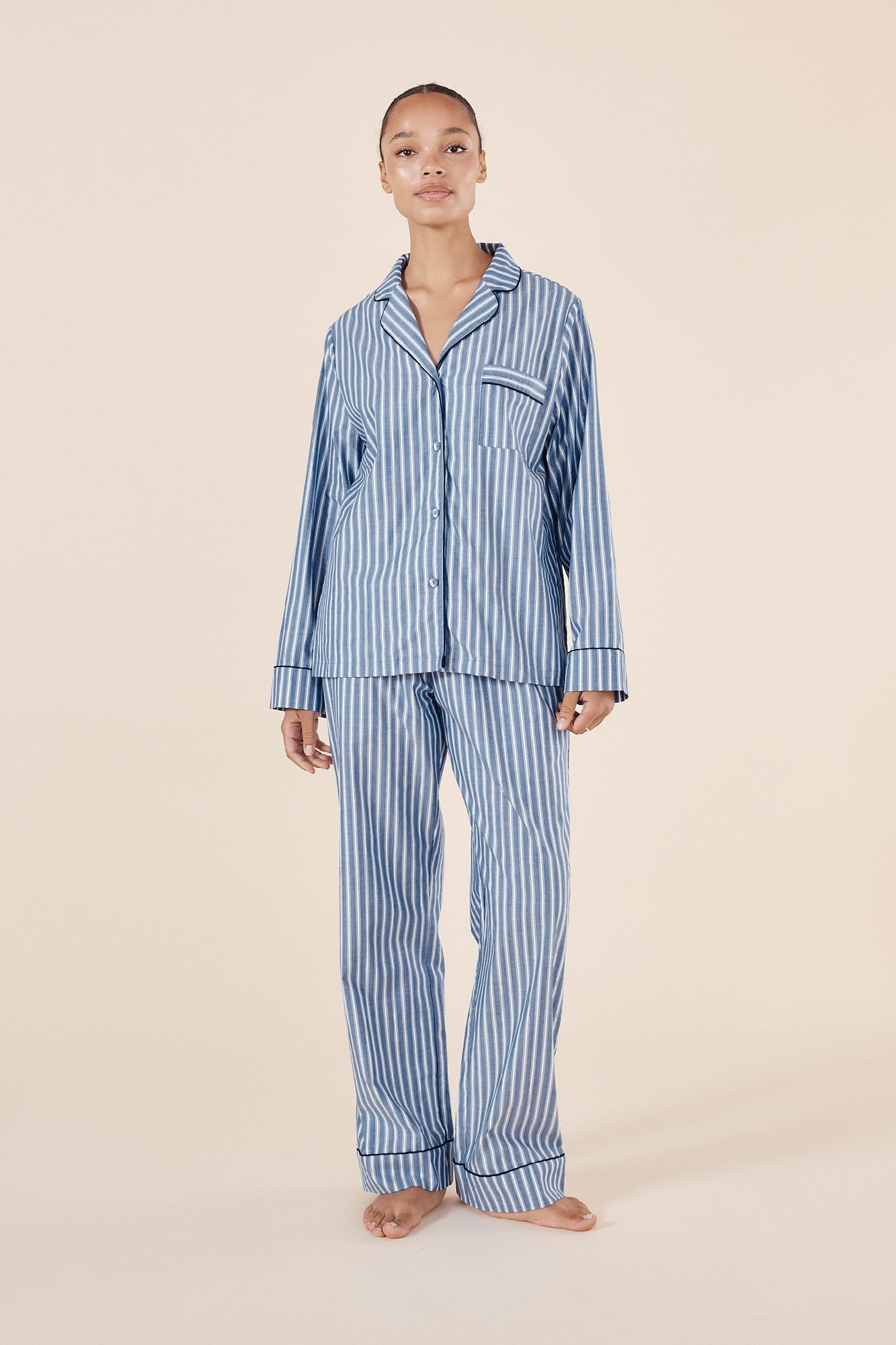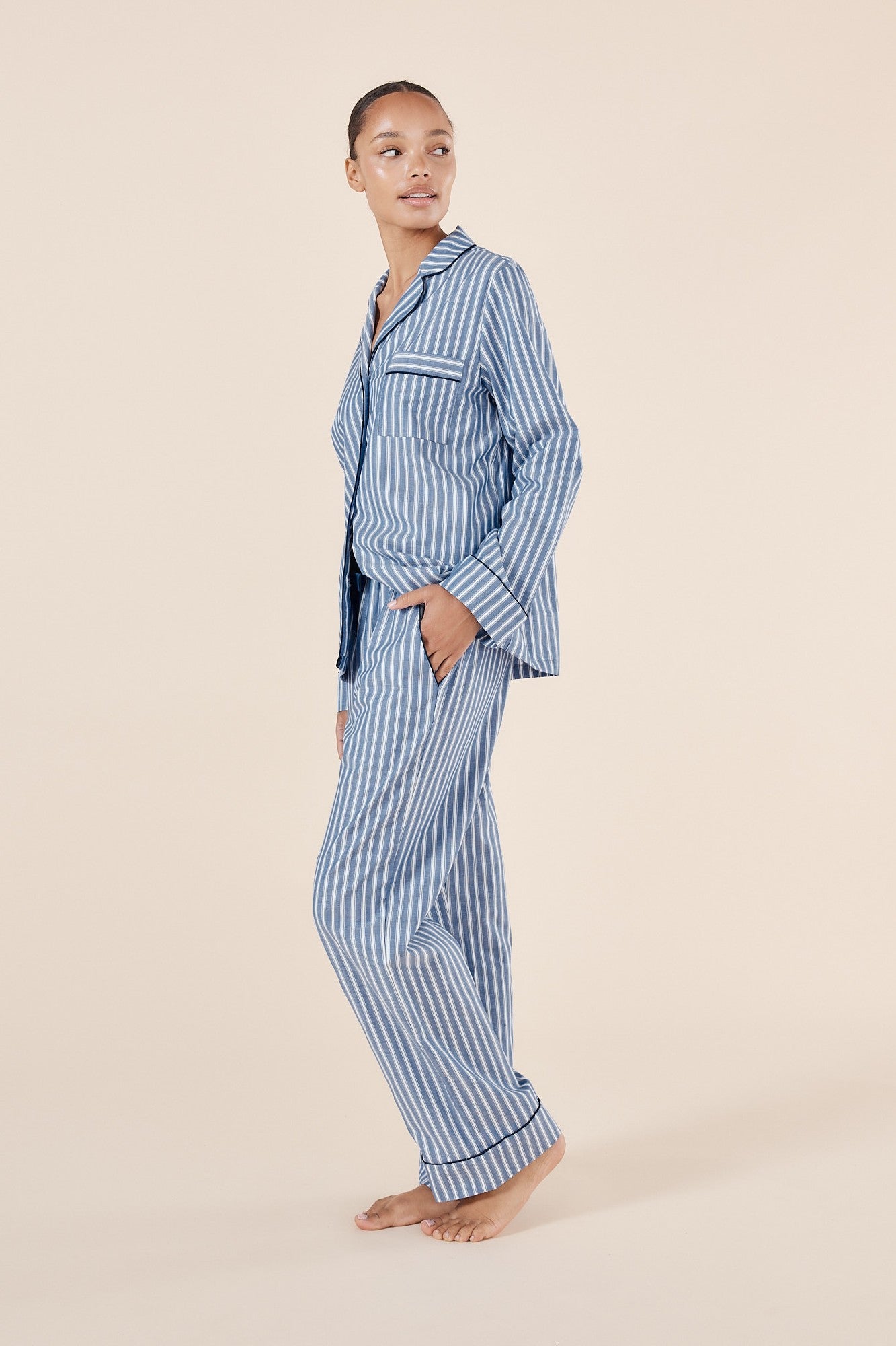 Gingerlilly Octavia Cotton Stripe PJ Set - Blue