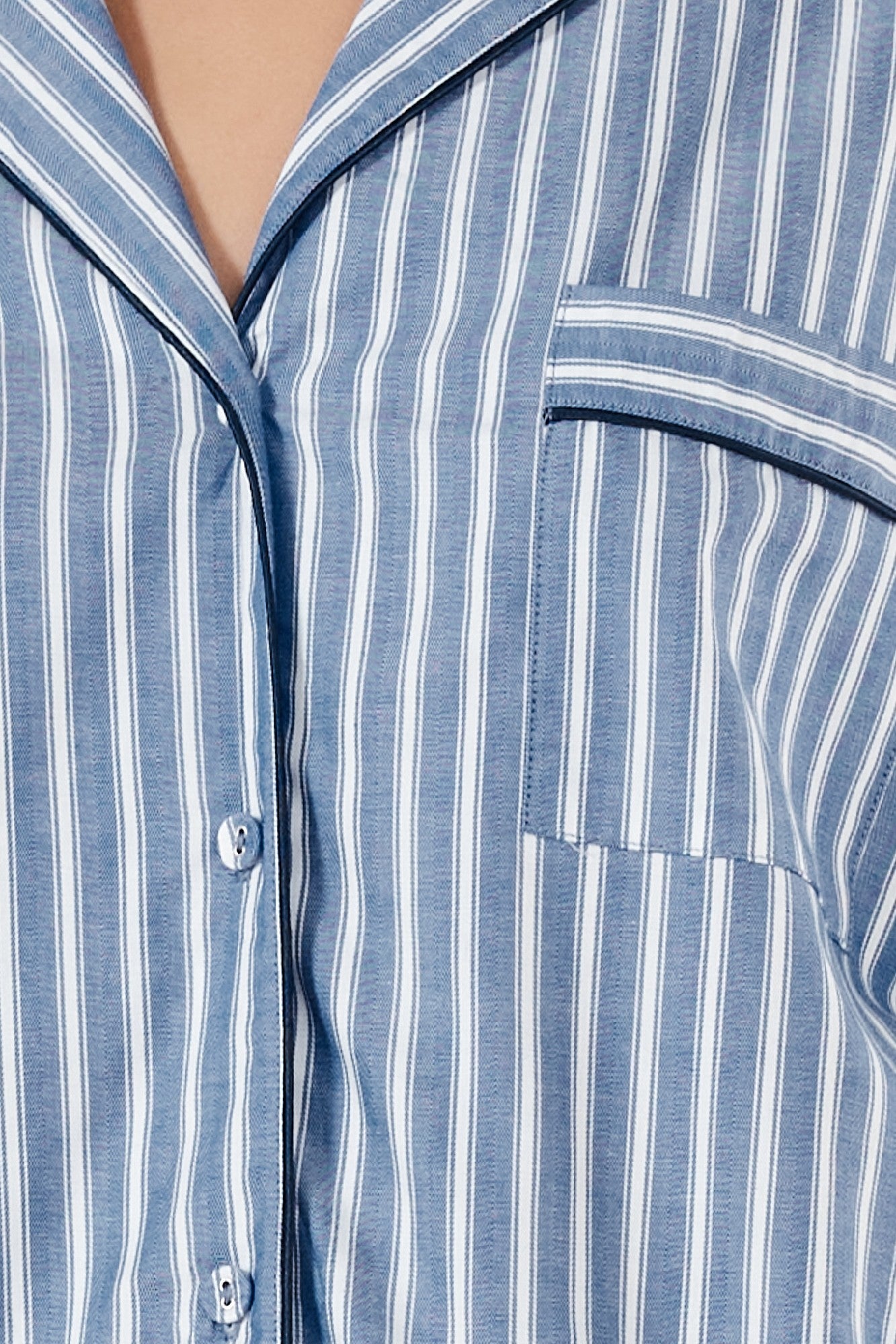 Embrace both comfort and style with the Gingerlilly Octavia Cotton Stripe PJ Set - Blue, a perfect addition to your sleepwear collection.