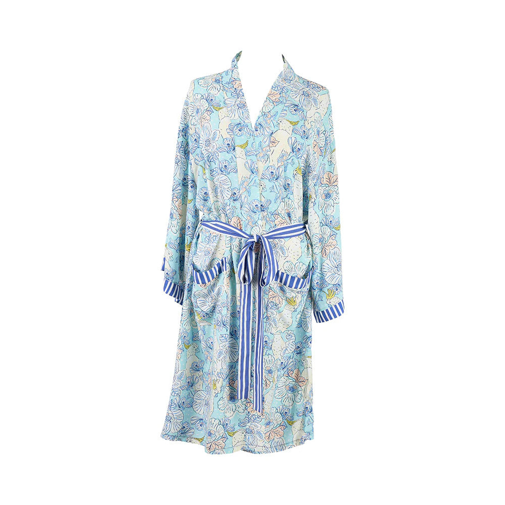 The Annabel Trends Kimino Robe - Hello Cockie will be the perfect lightweight cover up for summer. Over-sized for the comfiest fit and made from 100% viscose, these are sure to be your go-to dressing gown on those cooler summer nights when lounging at home. Kimono style robe features two large front pockets, tie waist, extra wide sleeves and comes just below the knee length.