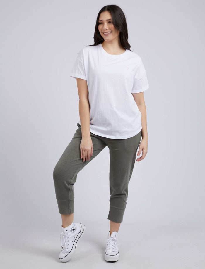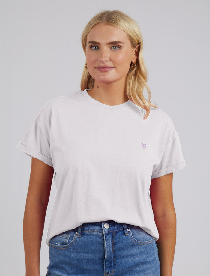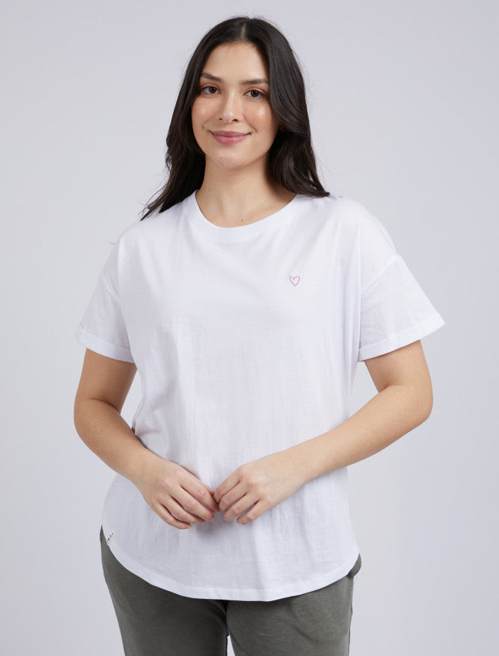 Introducing the Elm Halli SS Tee in White, a charming addition to your wardrobe that combines comfort with subtle detailing. Crafted from lightweight cotton jersey, this tee features a cute heart embroidery on the chest and turned-up cuffs, adding a touch of personality to a classic design.