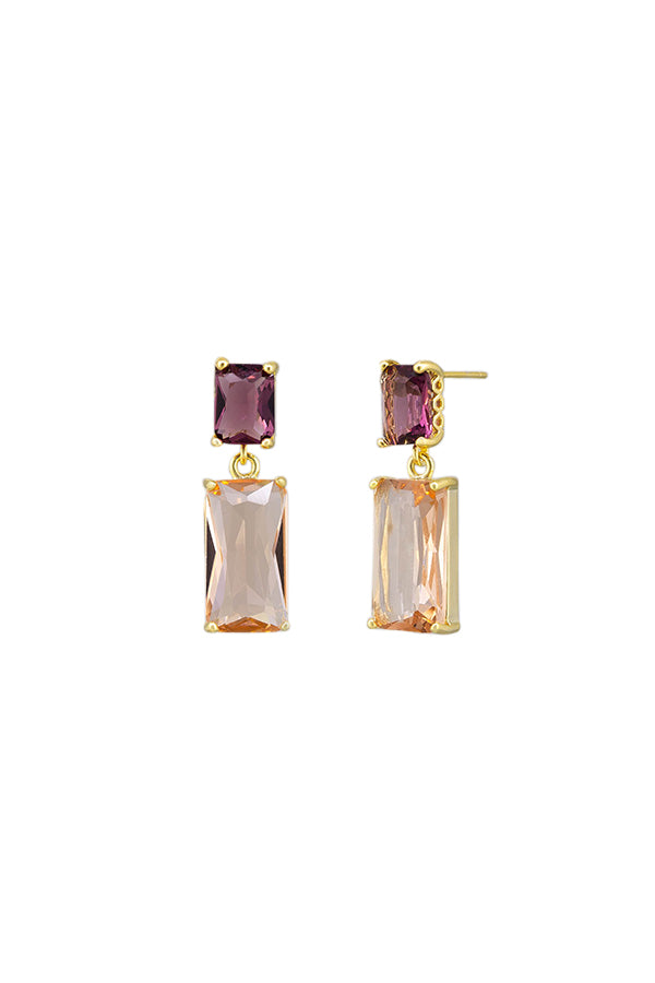 Elegant and striking, the Tiger Tree Earrings Erica – Peach Crystal combine soft peach and deep plum-toned crystals in a refined drop design. Crafted from gold-plated recycled brass with hypoallergenic posts, these earrings are perfect for adding a touch of sparkle to any outfit.