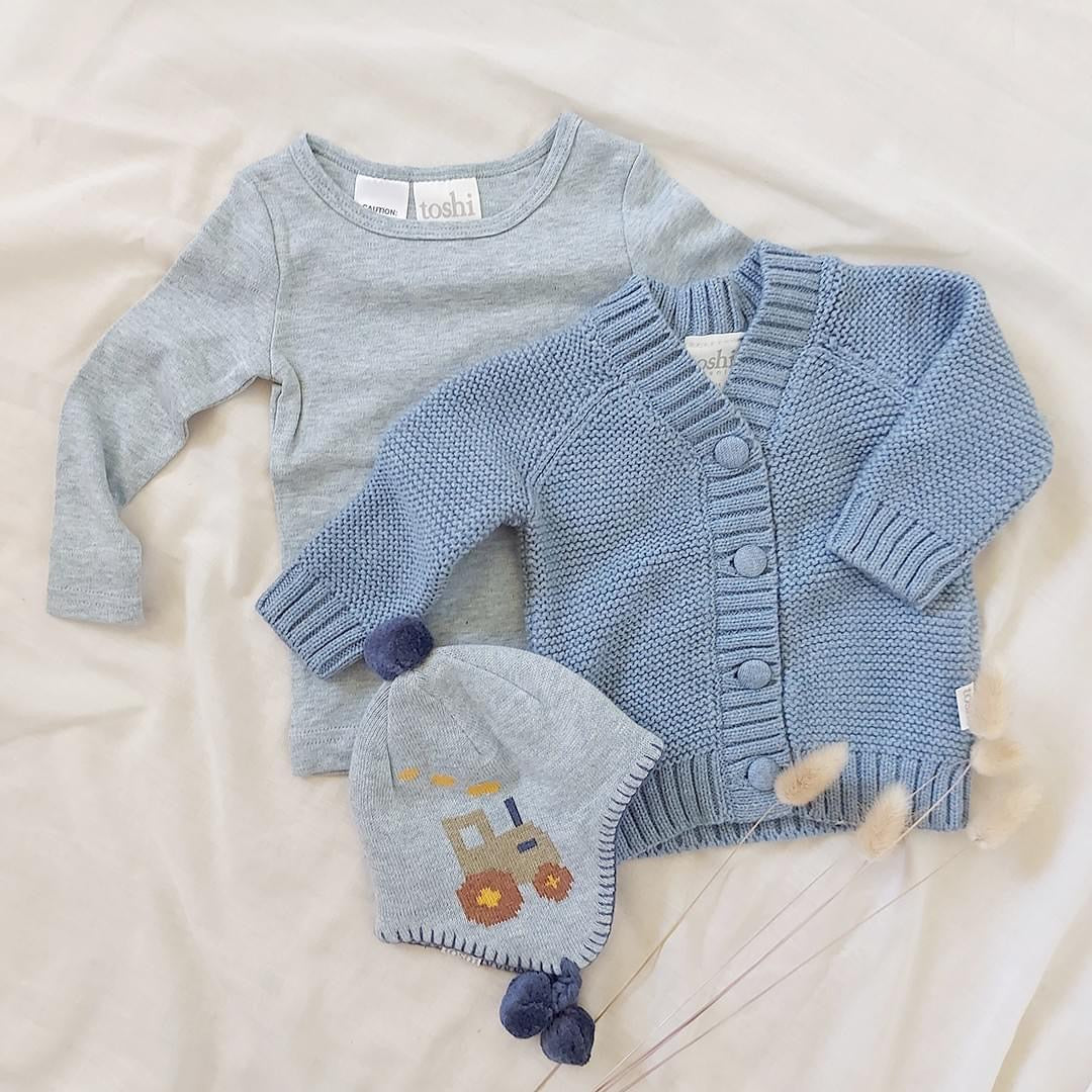 Keep your little one warm and stylish with the timeless Toshi Cardigan Andy Storm.