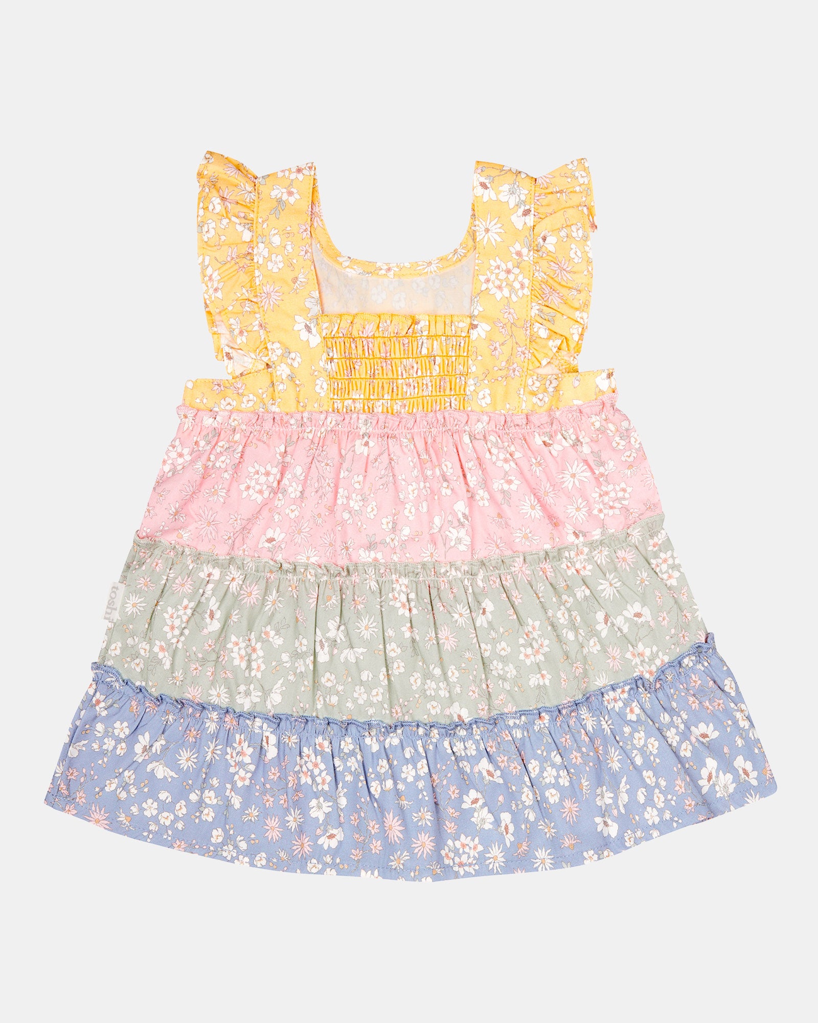 The Toshi Baby Dress Tier - Eva is a beautifully designed baby dress, crafted from the finest quality 100% cotton for ultimate softness and breathability. Featuring a delicate patchwork floral design in a soft pastel palette, this dress exudes charm and elegance. Cascading tiered panels create a flattering A-line silhouette, ensuring both comfort and freedom of movement. With a smocked back panel for adjustable sizing and effortless dressing, this dress transitions effortlessly from casual outings to special celebrations.