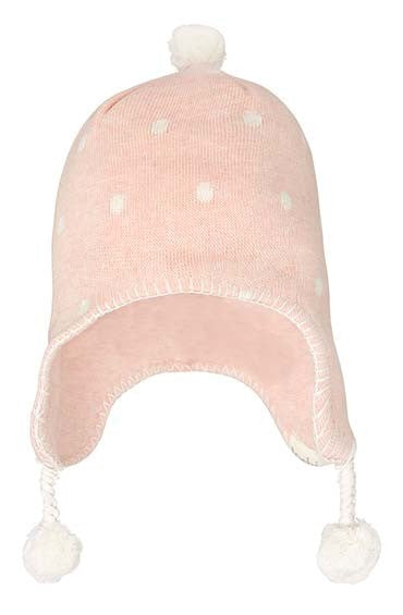 Toshi Earmuff Magic Peony is crafted from the finest quality certified 100% organic cotton yarn. Organic certification ensures the beanie is gentle on heads, as well as our precious environment. The beautifully-textured melange yarn brings an element of refinement to the beanie. This beanie features ear flaps for cosy and nurturing protection from the elements. A vibrant jacquard polka dot design creates a fun and playful style. This beanie colour is a pretty pink with classic cream polka dots. Pom poms introduce a cute and whimsical feel. The baby beanie Earmuff Magic Peony is fully lined for enhanced comfort and greater warmth during our cooler months.