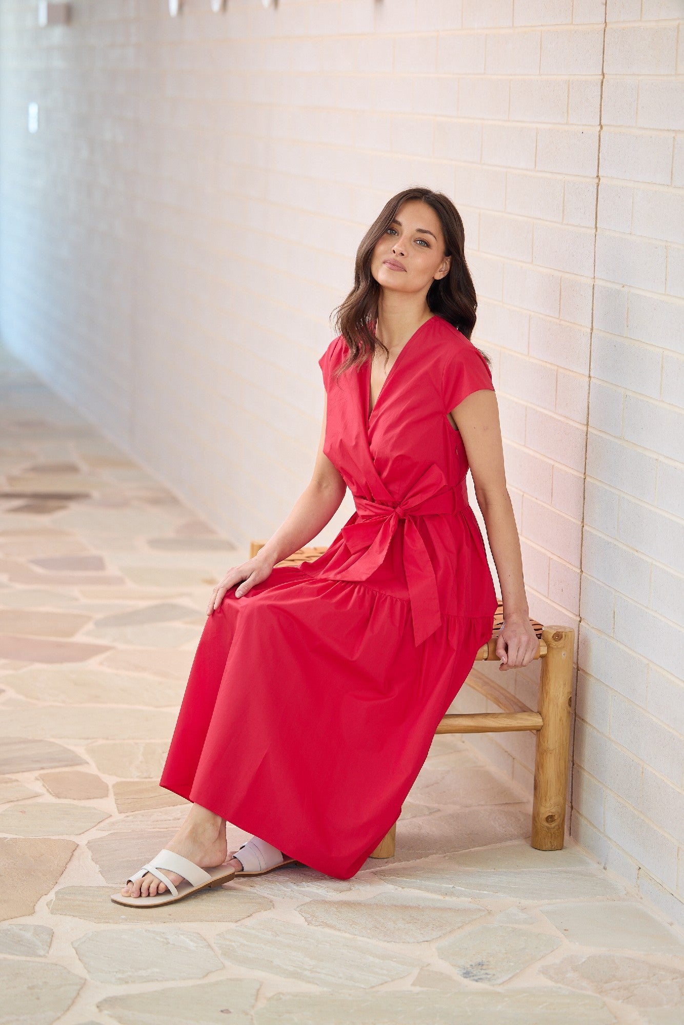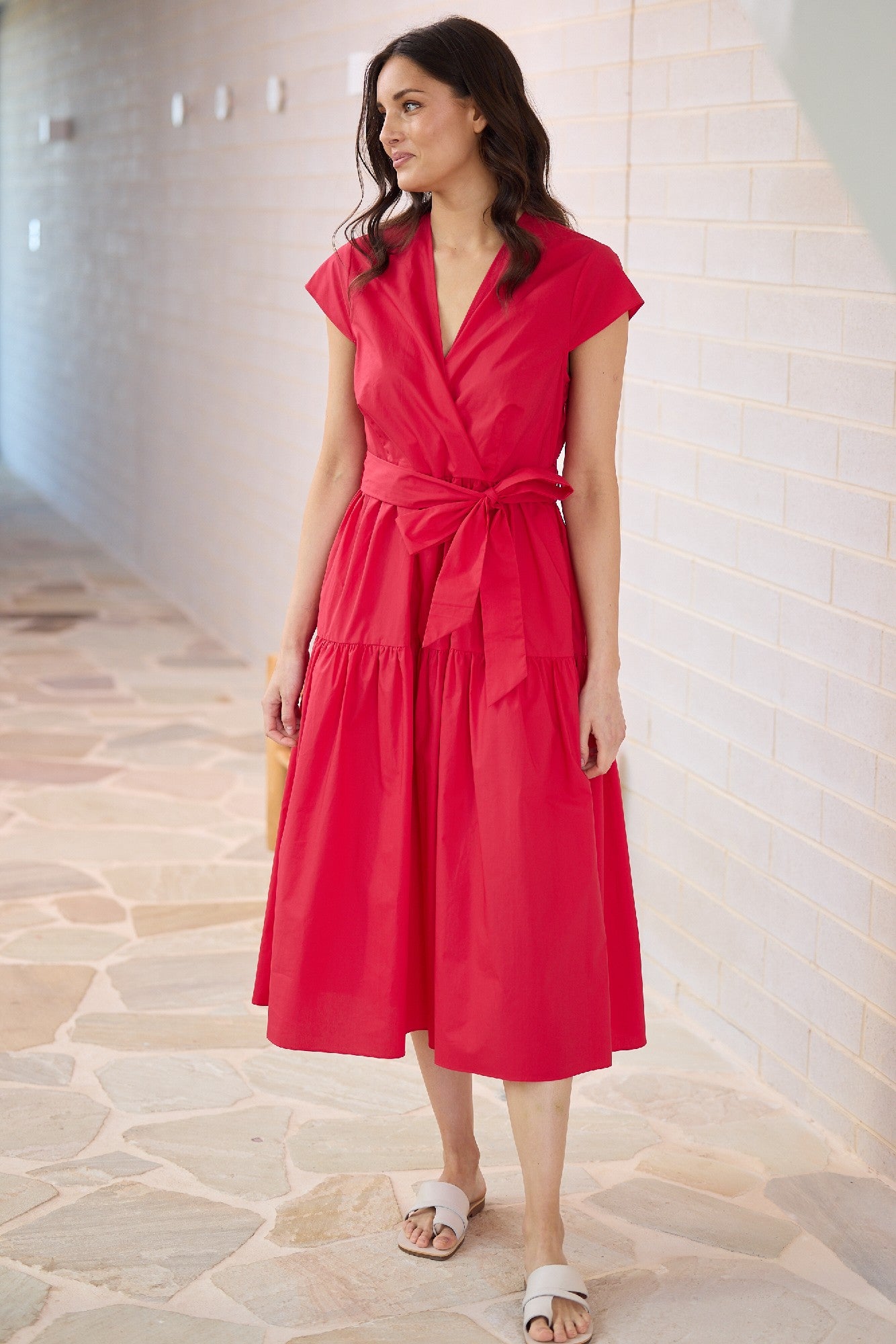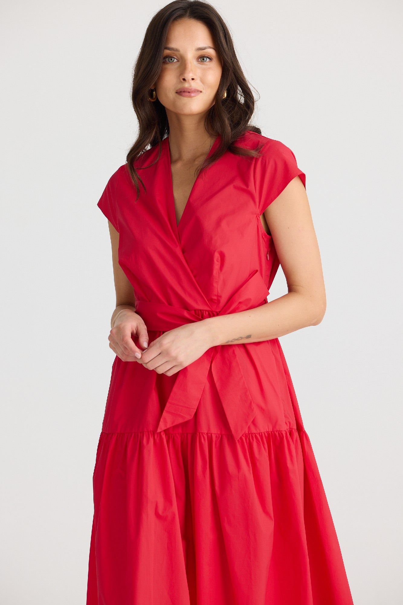 Bold, feminine, and effortlessly refined — the Brave & True Dress Posey - Chilli is a statement piece designed to flatter. Crafted from crisp cotton poplin, this dress features a sophisticated cross-over bodice, matching waist tie, and midi-length silhouette that moves beautifully. Perfect for days when you want to feel both confident and comfortable. Available online from Pink Poppies Living Creatively, your Stanthorpe boutique for Australian-designed fashion.