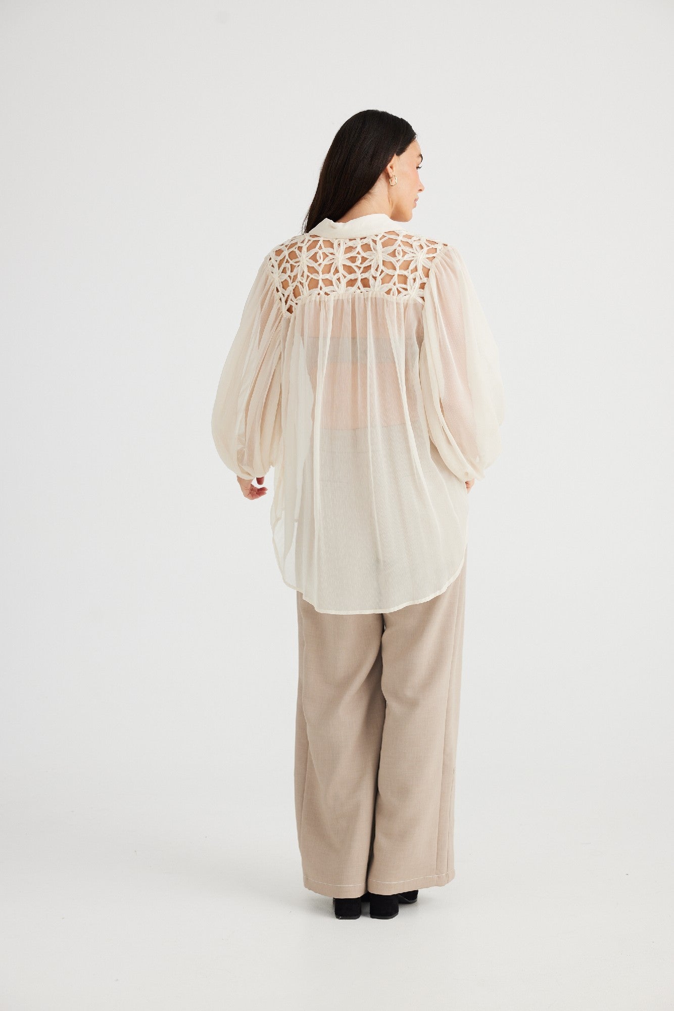 Expertly crafted and designed, the BRAVE&TRUE Shirt Eden is the ultimate addition to any wardrobe. Made with a lightweight and soft chiffon fabrication, this shirt features a classic collar and front button stand for a timeless look. The back yoke showcases a unique lattice weave, adding a touch of sophistication. Complete with long sleeves and elasticated cuffs, this shirt offers both style and comfort. Made from 100% polyester, it's easy to care for and maintain. Elevate your style with the BRAVE&TRUE Shirt Eden.