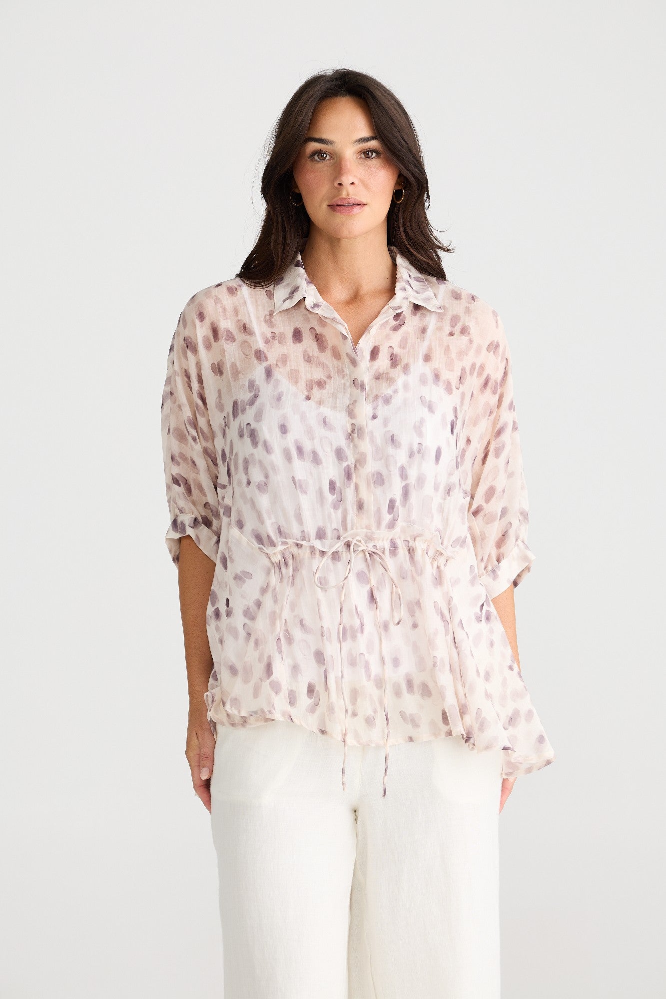 Soft, feminine, and effortlessly refined, the Brave & True Top Wonderland – Watermark is designed to bring easy elegance to your wardrobe. Crafted from a smooth 75% lyocell and 25% polyester blend, it offers a beautifully fluid drape with just the right amount of structure. The relaxed silhouette, gathered sleeves, and waist tie detail create a flattering, versatile look for every occasion.