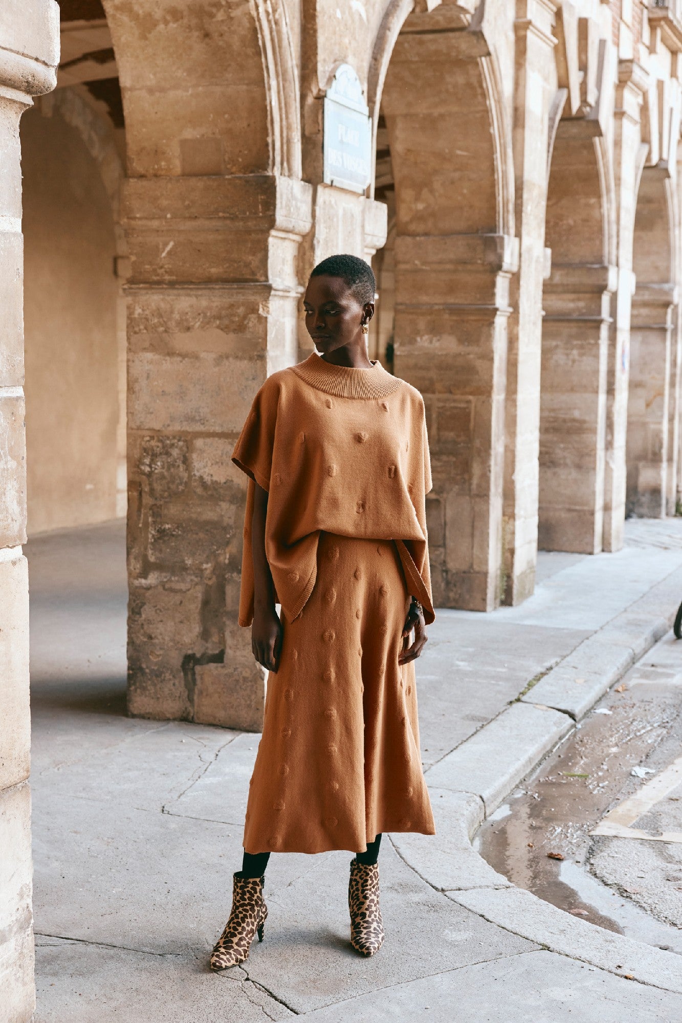 Embrace effortless elegance with the EB & Ive Skirt Masa Knit - Hazel, a beautifully textured A-line midi skirt designed for both style and comfort. Featuring a raised dot weave for subtle sophistication, this soft-knit skirt drapes beautifully, making it a versatile choice for the cooler seasons. Its elastic waistband ensures a comfortable fit, perfect for all-day wear.
