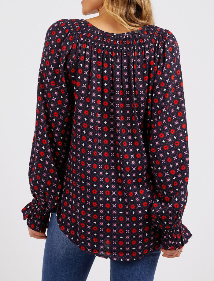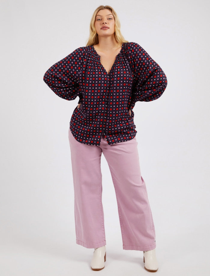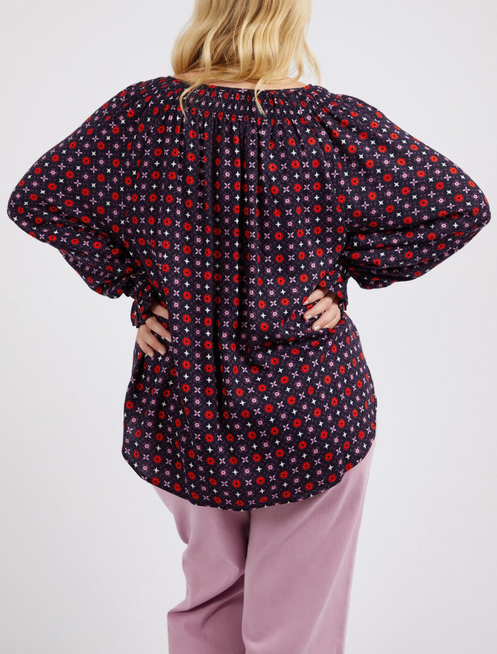 Polished yet relaxed, the Elm Blouse Jessie - Geo brings effortless sophistication to your everyday wardrobe — available now from Pink Poppies Living Creatively, proudly based in Stanthorpe and celebrating Australian style.